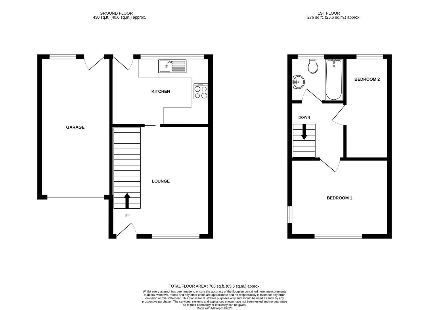 A semi-detached 2 bedroom house. Lounge. Kitchen diner. Bathroom with shower over bath. Garage. Driveway. Garden. Gas central heating. Double glazed. EPC Rating D